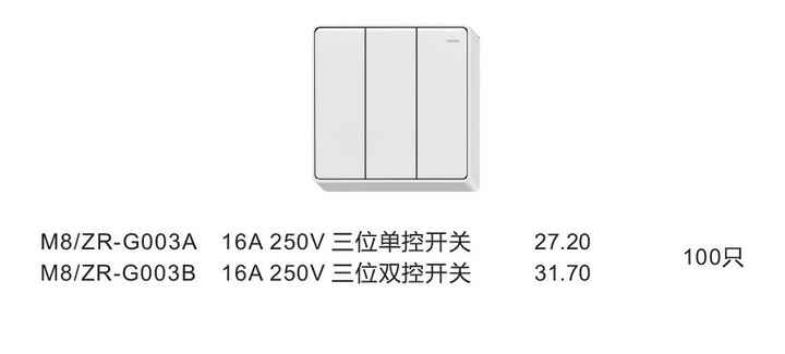 16A 250V三位单(双)控开关